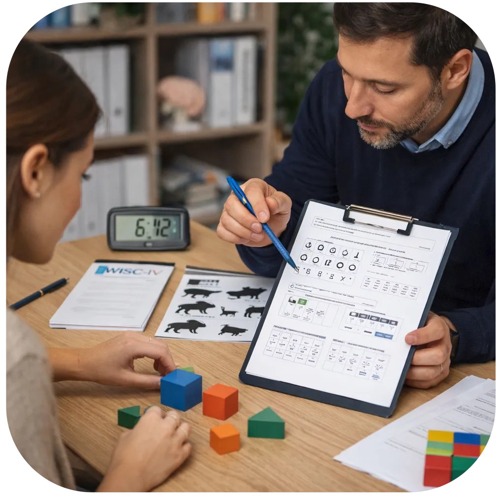 ✦ Evaluación Neuropsicológica: Aplicación, corrección e interpretación de baterías especializadas para identificar fortalezas y dificultades cognitivas. Incluye informe detallado para colegios, neurólogos o instituciones.