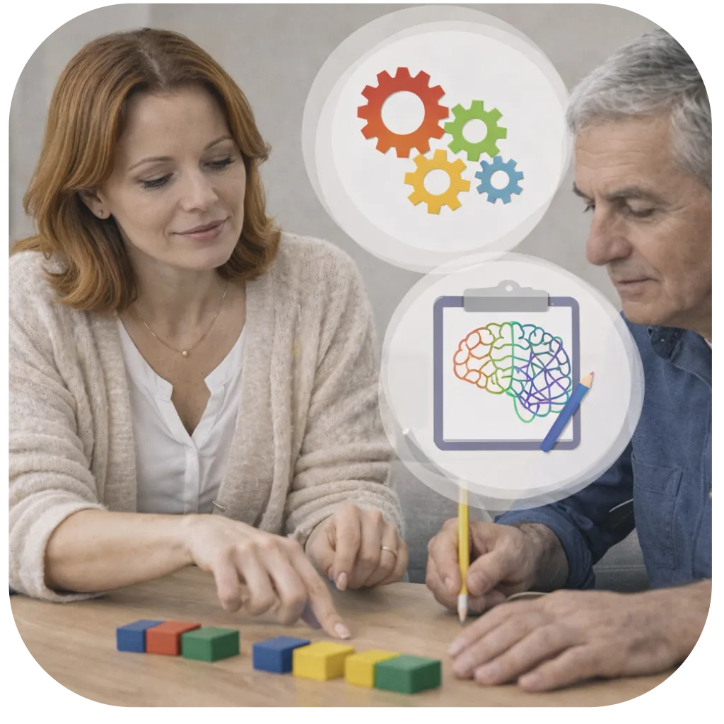 ✦ Rehabilitación Neuropsicológica: Programas personalizados para recuperar o fortalecer habilidades cognitivas: planificación, memoria, atención, funciones ejecutivas.